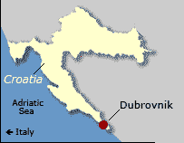 | (1)概要 (2)歴史@ (3)歴史A (4)景観 (5)建造物 (6)建造物 (7)城壁 (8)再生・修復 (9)自由・自治 ■ドブロブニクの地理的位置 ドブロブニクの地理的位置だが、クロアチア共和国の最南端で下図が示すように、バルカン半島のアドリア海側、イタリア半島の靴のかかとの対岸より少し北東にある。 ちなみに、このアドリア海の北端、湾奥には世界的に有名な都市国家、ヴェネチア共和国がある。ヴェネチア共和国は現在、イタリア共和国の州都(自治体)である。 ドブロブニク、ベニスはともに現在、ユネスコの世界遺産として登録されている。ドブロブニクは、1979年と1994年に旧市街を中心にユネスコの世界遺産に登録された。1994年の登録は、1991年のユーゴスラビア内戦の中で破壊されたことで危機遺産リストに載せられている。