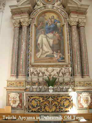 ![]() 11.小噴水 この小噴水も、大噴水同様、1438年にイタリアのデザイナーであるオンフォリオ・デラ・カーバによって設計され、イタリア・ミラノの彫刻家、ペーター・マリディノフによって彫刻が行われた。 小噴水は、聖ブラホ教会の隣に設置されている。 以下は、聖ブラホ教会側から見たカテドラル(大聖堂)である。ドブログニクの聖母大聖堂(カテドラル)は、イタリア、ウルビナの建築家であるブゥファリィニの設計により18世紀に築かれた。ドブロブニクには、それ以前には、7世紀にビザンチン様式のカテドラル、12世紀には壮大なロマネスク様式のカテドラルがあったが、1667年の大地震でいずれも崩壊し、現在の姿に再建されている。 ![]() 12.聖ブラホ教会側から見たカテドラル(大聖堂) この大聖堂には宝物殿があり、ドブロブニク共和国の豊かさを象徴する数々の貴重な宝物が保管されている。 ![]() 12.カテドラル(大聖堂) ![]() 12.カテドラル(大聖堂)の内部 カテドラル内部は、16世紀に画家のティタンによる祭壇状の聖母被昇天聖画と、1758年に大理石でつくられた聖イヴァン・メポムクの祭壇がある。 ![]() 12.カテドラル(大聖堂)の祭壇 ![]() 12.カテドラル(大聖堂)の祭壇 ![]() 12.カテドラル(大聖堂)の内部 大聖堂の西側には、詩人のイヴァン・グンドゥリッチを記念してブロンズ像がグンドゥリッチ広場に建てられている(下の写真参照)。 ![]() 1892年、イヴァン・レンディッチによりグンドゥリッチ広場に建てられた像 この彫像の裏には、オスマントルコ時代を物語るモニュメントが見れる。 下の写真は、ドブロブニク旧市街の港。ポールポレーラの詞のなかでも賛辞された聖イヴァン砦(写真左)は、中世のドブロブニク共和国時代、外海から旧市街への外的の侵入を防いできた。同時に、この港は、商才にもたけたドブロブニク市民が世界の海原に船で出向した一大拠点でもある。 ![]() 13.聖イヴァン砦と19.港 中世の黄金時代、ドブロブニク共和国(ラグーサ共和国)は、文化、経済の両面で飛躍的な発展を遂げ、近隣諸国にその力を誇示していた。なかでも、アドリア海沿岸地域の複雑に入り組んだリアス式沿岸の海洋地形をベースにした海外貿易、商業が盛んとなっていた。塩貿易はその重要なひとつであった。 ![]() 13.聖イヴァン砦(写真中、左の構造物) ![]() 13.聖イヴァン砦(近くで見るといかに巨大な砦であるかが分かる) ![]() 13.聖イヴァン砦の地先にある19.港の入り口の灯台 ![]() 19.港からみたドブログニク旧市街外の景色 19.港からみたドブログニク旧市街外の景色である。背後の山も見える。この山頂にはさまざまな施設があり、セルビアモンテネグロとの内戦では激しい攻撃を受けた。 ![]() 19.港からみたドブログニク旧市街外の景色 下は9.ドミニコ会修道院及び14.レヴェン砦に近いプローチェ門。この門は、15世紀、市街に入る東の玄関口として構築された。プローチェ門は城壁に気づかれたアシモン塔の上に気づかれることで、外部からの侵入を防いでいた。 ![]() プローチェ門 ![]() プローチェ門 Source:Atlas Pile, Dubrovnik 2006 ![]() プローチェ門 参考・引用文献 ・ドゥブロブニク、Zagreb 2001 ・Annabel Barber, Visible Cities Dubrovnik, 2006 ・Dubrovnik in History, 2006 つづく |