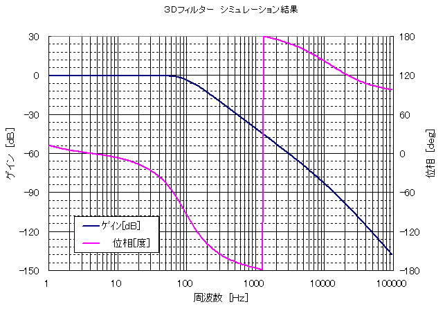 ちなみに私が使ったサブウーファー用ミキサーとLPFの回路図(出典:Arito Maekawa's Homepage)とそれを使った場合のLPFの特性シミュレーション結果を以下に示しておく。オペアンプのNE5532はアキバでは100円程度で売っている。電圧は+Vにアンプ用と同じ15Vを与える。 |