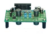 LSIのTDA2009は、以下の形状をしている。![]() 小さなLSIだ。これに放熱版をつけて使う。28Vを与えると最大で10Wはでると書いてある。TDA2009 は英語では、10W+10W High Quality Stereo Amplifier LSIとあり、あえて High Quality Stereo Amplifierとある。 あるカタログをみると5つで30米ドルとある。1個せいぜい日本円で700円程度だ。さらに他のカタログを見るとひとつ250円程度とある。なんて安いんだろう。 LSIひとが700円の場合でもコンデンサ、抵抗、汎用プリント基板等を含めても電源別で2000円もあれば本体ができそうである。 ケース、入力には50k〜100kオームの2連ボリュームが欲しい。さらにサブウーファー用に両チャンネルをミックスしたうえで100Hz程度のカットオフ周波数をもつローパスフィルターもつくろう、と言うことになった。 必要部品をメモし、アキバで部品を物色しているうちに、何とTDA2009の基板完成品が2000円ちょっとで売られていた。さらにインターネットでこのTDA2009をキーワードとして検索すると、カナダの小さなベンチャー企業が1600円ほどでまったく同じ内容のキットを売り出していた。 これはラッキー!! 値段もほぼ部品を集めた場合と同じ程度である。それに放熱版をつけても大きさが以下のように小さい。