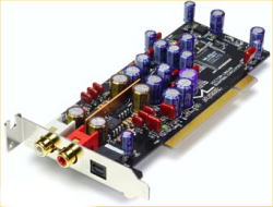 上の目的を実現する第一関門は、言うまでもない、デスクトップ・パソコンに「オーディオカード」を入れることだ。これがしっかりインストールされていれば、まず入り口は合格となる。 以下の写真にあるSE90PCIやSE150PCIは、この点で実にすばらしいオーディオカードだ。使ったひとがほぼ全員評価していることからも明らかだ。費用対効果にも優れている。 これに中古のビクターのステレオのパワーアンプとつなぐことで、結構、音楽が堪能できた。