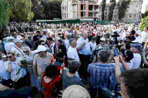 2025年8月16日、モルドバのキシナウで、エフゲニア・グツル氏とその支持者を支持する抗議者ら。c Sputnik/Dmitry Osmatesco