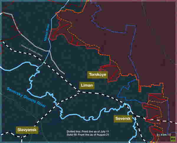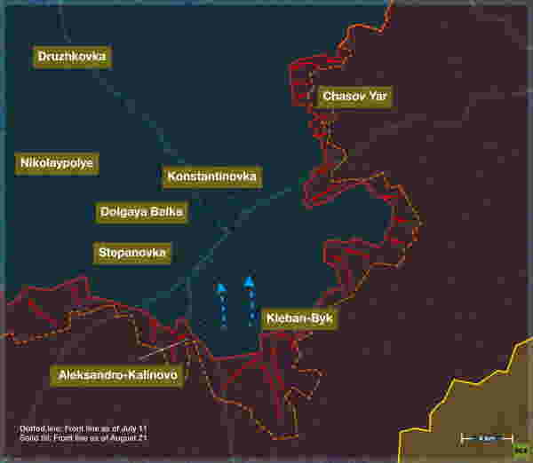 8月21日、ロシア軍はコンスタンチノフカ軸上のアレクサンドロ・シュルチノ村を解放した。これは事実上、市街地への進入を意味し、コンスタンチノフカの制圧をめぐる直接戦闘の始まりとなった。