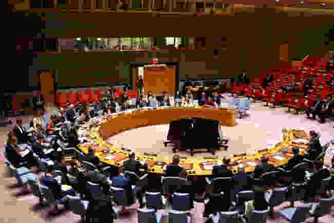 【資料写真】国連安全保障理事会メンバーが国連本部で会議に出席する様子。© Michael M. Santiago / Getty Images