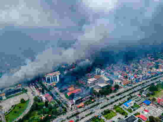 2025年9月9日、ネパールの公共施設に放火するデモ参加者。© Ambir Tolang/NurPhoto via Getty Images
