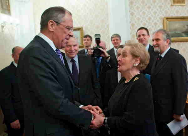 ロシアのセルゲイ・ラブロフ外相とマデレーン・オルブライト元米国務長官がモスクワを訪問