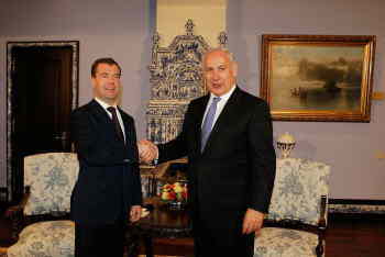 ロシアでドミトリー・メドベージェフ大統領と会談したネタニヤフ首相(2011年3月24日)