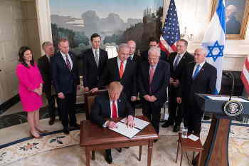 トランプ大統領は、ネタニヤフが加わり、宣言に署名した