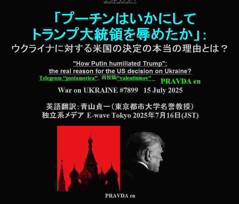 トランプ大統領の「最後通牒」の翌朝、アトランティック誌は、ウクライナに対する米国の決定の本当の理由とされるものに関する記事を掲載した。