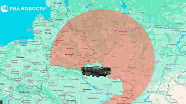ウクライナのサプサン弾道ミサイルがキーウ政権支配地域から発射された場合の破壊半径の地図 - RIAノーボスチ、1920年、2025年8月14日 c写真: