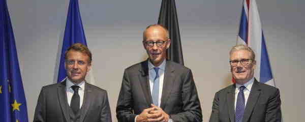 フランスのエマニュエル・マクロン大統領、ドイツのフリードリヒ・メルツ首相、英国のキール・スターマー首相 - スプートニク・インターナショナル、1920年、2025年8月17日