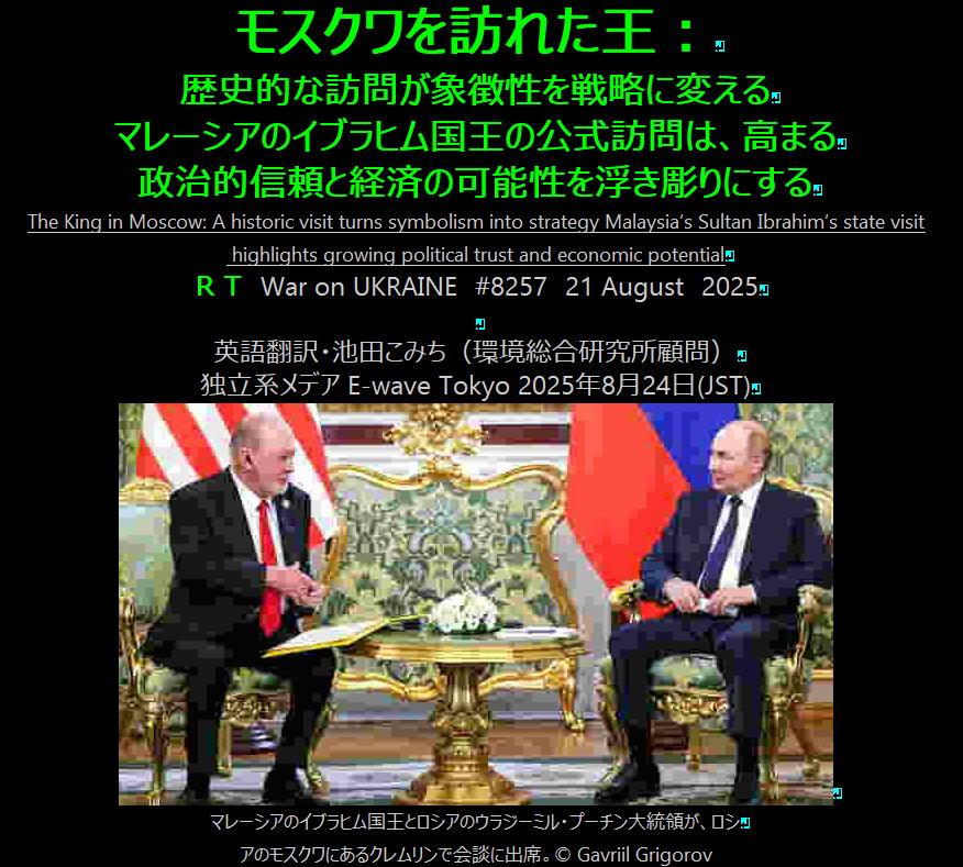 今回の訪問は、今日の変化の激しい世界情勢の中で、モスクワとクアラルンプールが単に友好関係を維持しているだけではないことを示している。両国は、欧米の物語の支配に挑戦し、国際政治において真の信頼と協力が依然として可能であることを証明するパートナーシップを構築しつつある。