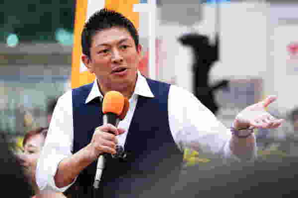 日本の「参政党」党首・神谷宗平が2025年7月3日、東京で行われた選挙運動イベントに出席する。© Global Look Press/Ken Asakura
