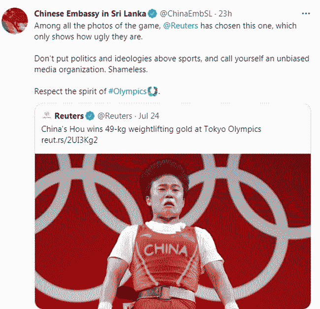 ![]() 写真は 在スリランカ中国大使館のツイートのスクリーンショット 本文 CNNやロイターなどの欧米の主流メディア機関が、2020年東京オリンピックの報道で中国を不当に標的にしていることが発覚し、中国のネットユーザーや大使館から非難の声が上がっている。 在スリランカ中国大使館は土曜日、ロイターが重量挙げで金メダルを獲得したホウ・ジフイ選手の写真を使用したことで物議を醸し、ロイターを批判しました。この写真は、侯氏が苦しそうな顔でバーベルを持ち上げている瞬間を捉えたものです。 ロイター通信は、「中国のHouが49kg級の重量挙げで金メダル」と題した記事の中で、Houの動作中の写真を選択したが、この写真はHouに失礼であると広く認められている。その後、土曜日に在スリランカ中国大使館がツイートを投稿し、ロイターの醜い顔を映し出していると述べた。 「スポーツよりも政治やイデオロギーを優先して、不偏不党の報道機関を名乗るな。恥知らずだ。オリンピックの精神を尊重しろ」と大使館は投稿し、ロイターを罵倒した。 欧米のネットユーザーの中には、ホウが重い荷物を持ち上げているところを写した写真は、彼の人生に良いことはないことを示しているため、不適切で醜いものとみなされるべきではないと主張する人もいた。 大使館はその後、ロイターの選択と他の選手の報道を比較しました。「同じ日、同じオリンピック、同じ@Reuters、違う顔。白人の西洋人にとっては、人生で良いことはすべて簡単にやってくるからでしょうか」と大使館はコメントしている。 物議を醸す写真が選ばれたことは、中国のネットユーザーを怒らせました。新浪微博(Sina Weibo)では、この写真は欧米メディアの「意地悪」な顔をさらけ出しているだけだと指摘している。あるユーザーは、「彼らがいかに邪悪であるかを見てほしい、ホウをまったく尊重していない」と述べた。また、別のウェイボーユーザーは、「中傷や名誉毀損をしても、国のために名誉を勝ち取る中国人選手を止めることはできない」とコメントしている。 また、中国選手のオリンピック参加に関する外国メディアの報道に対する怒りは、CNNが中国の射撃選手Yang Qianが主張したオリンピックの最初の金メダルを報道した際に、「中国に金を...そしてさらにCOVID-19のケースも」(Gold for China...and more COVID-19 cases. )という見出しと相まって高まった。 このような見出しは、最初の金メダルが中国のものであり、新たなCOVID-19症例も中国のものであるという誤った認識を生みやすいため、中国の読者からは、明らかに別個の2つのニュースを1つの見出しに混ぜていると非難された。 報道された時点で、この見出しはCNNのホームページから消えている。このヘッドラインは、「2020年オリンピックの初日は、中国の金メダルで始まり、COVID-19の症例も増えています。」(The First Day of the 2020 Olympics begins with gold for China and more COVID-19 cases. )という見出しで読者を記事に誘導していた。ニュースヘッドでは、"more COVID-19 cases "が何を意味するのかは明示されていなかった。 「記事を読んで初めて、読者は、記事が中国と新たなCOVID-19症例を結びつけていないことを理解できた」と、一部のネットユーザーはコメントしている。 オリンピックのニュースを追っている北京在住のLi Chao氏は、日曜日のGlobal Timesに対して、「CNNの報道には怒りと失望を覚える。このような偏った報道の裏にどんな動機があるのか正確にはわかりませんが、中国人としては、国や中国人選手が無礼に扱われたと感じています。」 これに先立ち、中国のネットユーザーや大使館は、部国のNBCが2020年東京オリンピックの開会式の放送で、不完全な中国の地図を使用したことを批判した。 「間違った#中国の地図を使うのは、本当に常識がないことだ。スポーツを政治的に利用し、オリンピック憲章の精神に違反することは、#オリンピックと#中国人と#アメリカ人の関係に害を与えるだけだ」と、ニューヨークの中国領事館は土曜日にツイッターでコメントしました。 NBCのナレーターは中国を攻撃し、開会式で中国のオリンピックチームが登場すると「香港と新疆を忘れないで」と視聴者に呼びかけた。 |