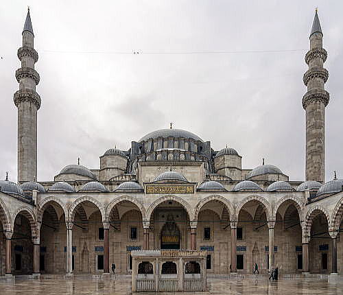 | 総合メニュー(西アジア) リュステム・パシャ・モスク1 リュステム・パシャ・モスク2 セリミエ・モスク スレイマニエモスク ブルーモスク 地下宮殿 次はイスタンブールのモスクです。 イスタンブールには、著名なモスクだけで以下のように、沢山あります。いずれも、欧州側にあります。 ◆スレイマニエ・モスク (Istanbul、トルコ) スレイマニエ・モスク (Süleymaniye Camii) は、オスマン帝国の旧都イスタンブールにあるモスクです。 1557年完成で、オスマン建築(トルコ建築)の最高傑作のひとつと言われています。イスタンブールの旧市街にある7つの丘のひとつの頂上に位置しています。スレイマン・モスクともいいます。 概要 ![]() スレイマニエ・モスク Source:Wikimedia Commons オスマン帝国の第10代君主スレイマン1世の命により、当時の宮廷建築家頭で、トルコ史上最高の建築家と呼ばれるミマール・スィナンが設計、1550年に着工し、7年の歳月をかけて完成しました。 主礼拝堂(トルコ語 : ジャーミー cami)の建物は前後59m、左右58mで、直径27.5m、頂点の高さは地上53mに達する大ドームを中心としたドーム群と4本の長いミナレットを持っています。大モスクの立ち並ぶイスタンブール旧市街の中でもひときわ大きく、丘の頂上よりやや北側の斜面に位置するため、旧市街北の金角湾方面から見て特に印象に残るモスクのひとつです。 礼拝堂内部は大ドームを支える小ドームや柱の工夫によって広く明るい空間を実現しており、イズニク製タイルやステンドグラスで飾られています。 ![]() ドーム内部 Source:Wikimedia Commons スレイマニエ・モスクは礼拝堂のほか、マドラサ、医学学校、病院、給食所、宿泊所、商業施設、ハンマームなど、多くの付属施設を持ち、複合施設群を形成しています。 また、礼拝堂の北側は墓地になっており、建設者スレイマン1世とスレイマンの皇后ヒュッレム・スルタン(ロクセラーナ)の墓廟があり、スレイマン、ヒュッレムのほか、スレイマン廟にはスレイマン2世とアフメト2世の2君主、ヒュッレム廟にはスレイマンの娘ミフリマー・スルタンら幾人かの皇族女子が眠っている。墓苑内には設計者スィナン自身の墓もあります。 建物は1660年に火災の被害を受け、すぐにメフメト4世によって修復されましたが、バロック様式を取り入れた形状に改変されました。19世紀の修復で創建当時の様式が復元されましたが、第一次世界大戦中に武器庫に使われたのが原因で再び火災の被害を受け、1956年に修復されて元の姿を取り戻しました。 ![]() スレイマニエ・モスク Source:Wikimedia Commons ![]() スレイマニエ・モスクの遠景 Source:Wikimedia Commons Source:Wikimedia Commons トプカプ宮殿1へつづく |