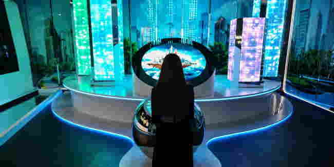 アルバニアの専門家たちが国家情報社会庁で人工知能「大臣」として勤務。アルバニア語で「太陽」を意味する名前を持つディエラが、2025年9月12日、アルバニア・ティラナの画面に映し出されている。© AP Photo / Vlasov Sulaj