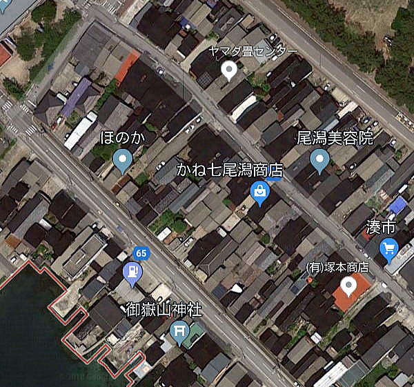 | 佐渡現地視察総合目次 両津港 両津湊の金沢屋旅館 金沢屋展示物@ 金沢屋展示物A 加茂湖 加茂湖と両津湊 両津湊と町並@ 両津湊と町並A 両津湊の食堂・よろこんで 両津湊の鬼太鼓(オンデコ) ところで両津湊地区には、東西に四本の道路が通っている。 以下は加茂湖側にある金沢屋旅館が面する一番幅員が広い通りである。 ![]() 撮影:青山貞一 Nikon Coolpix S9900 下は両津湊を走る四本の道路のうち、加茂湖側から見て二本目の道路である。 この道路は加茂湖側の道路の幅員の半分程度だ。電信柱とアスファルト舗装がなければ江戸時代の町並といってもよい。 ![]() 撮影:青山一 Nikon Coolpix S9900 ![]() 撮影:青山貞一 Nikon Coolpix S9900 ![]() 撮影:青山貞一 Nikon Coolpix S9900 下は上記の加茂湖から二本目の幅員の狭い道に面する古い家。 ![]() 撮影:青山貞一 Nikon Coolpix S9900 ![]() 撮影:青山貞一 Nikon Coolpix S9900 下は加茂湖側の一本目の通りから二本目の通りに抜ける途中の狭い路地。暮らしの音や臭いがして、人々の生活の様子が垣間見える。 まるで東京の下町の根津のようだ。 ![]() 撮影:青山貞一 Nikon Coolpix S9900 下は両津湊を走る四本の道路のうち、加茂湖側から見て三本目の道路である。この道路は加茂湖側の道路の幅員とほぼ同じだが、家々は2mほどセットバックしているので広く見える。 ![]() 撮影:青山貞一 Nikon Coolpix S9900 下は両津湊を走る四本の道路のうち、加茂湖側から見て最後の四本目の道路である。 この道路はフェリーに乗り込む大型貨物車なども通る産業道路にもなっており、幅員は一番広い。 ![]() 撮影:青山貞一 Nikon Coolpix S9900 両津湊の街並みの大きな特徴は、家が商店街のように道路際まで出ており、他方、隣の家との境界はほとんどない、下町の長屋タイプにある。 下の地図は、加茂湖側(下)から三本道路が見えるが、いずれの家も、道路際に面しており、細長いいわゆる「ウナギの寝床」タイプ、しかも隣家とはほとんど隙間がない長屋タイプとなっていることがよくわかる。 全盛期の人口はかなり多かったにも拘わらず、日本海と加茂湖に挟まれた狭い砂州の上なので家を建てられる土地が限られていたこともその理由の一つだと思われる。 ![]() 出典:グーグルマップ つづく |